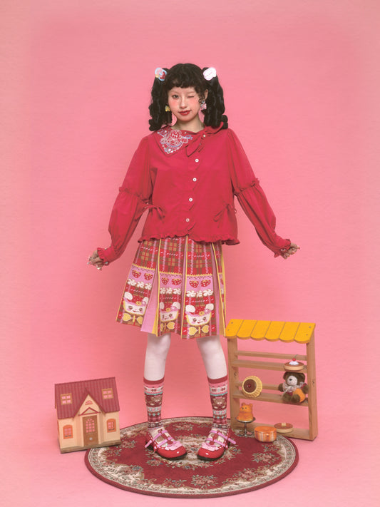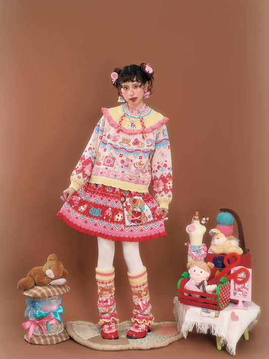 Cartoon landscape retro contrasting color lapel versatile knitted sweater cardigan