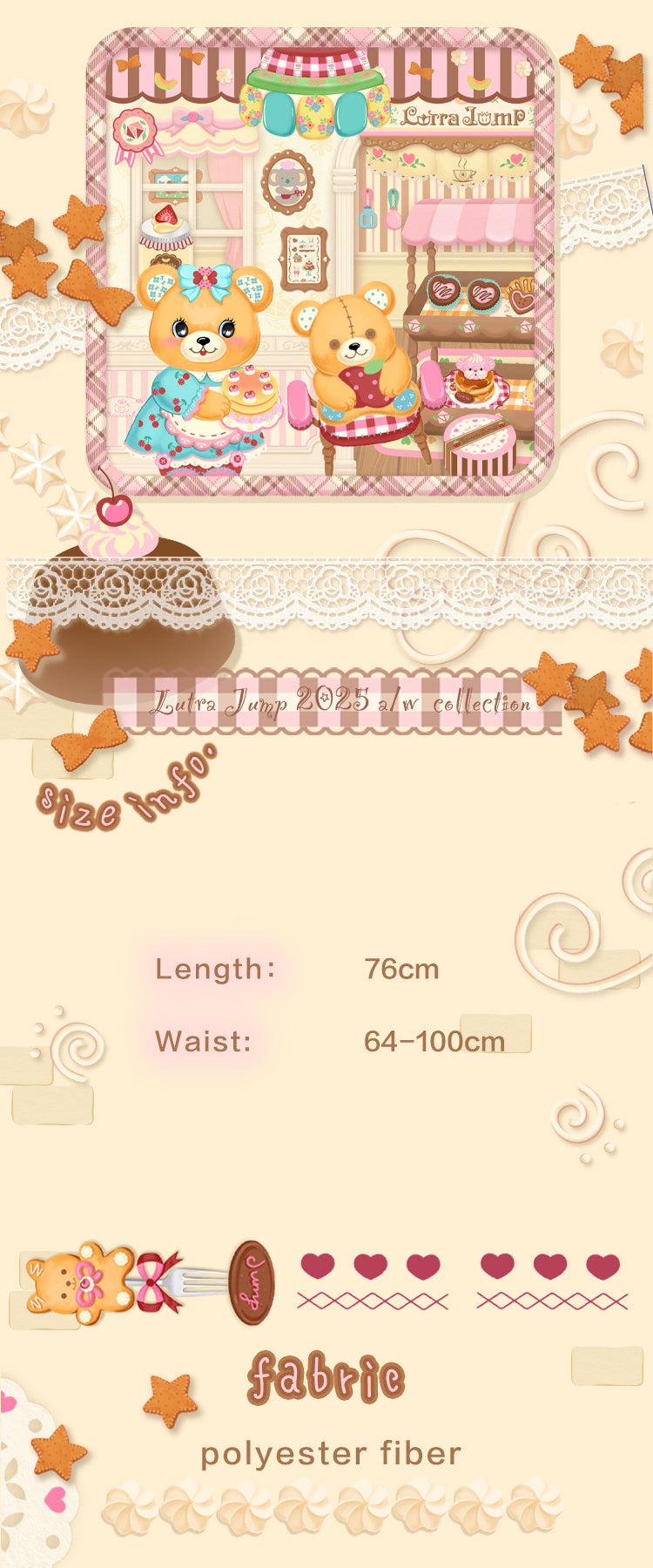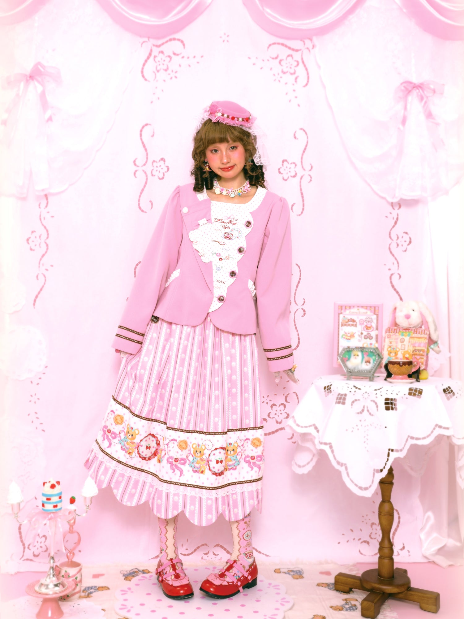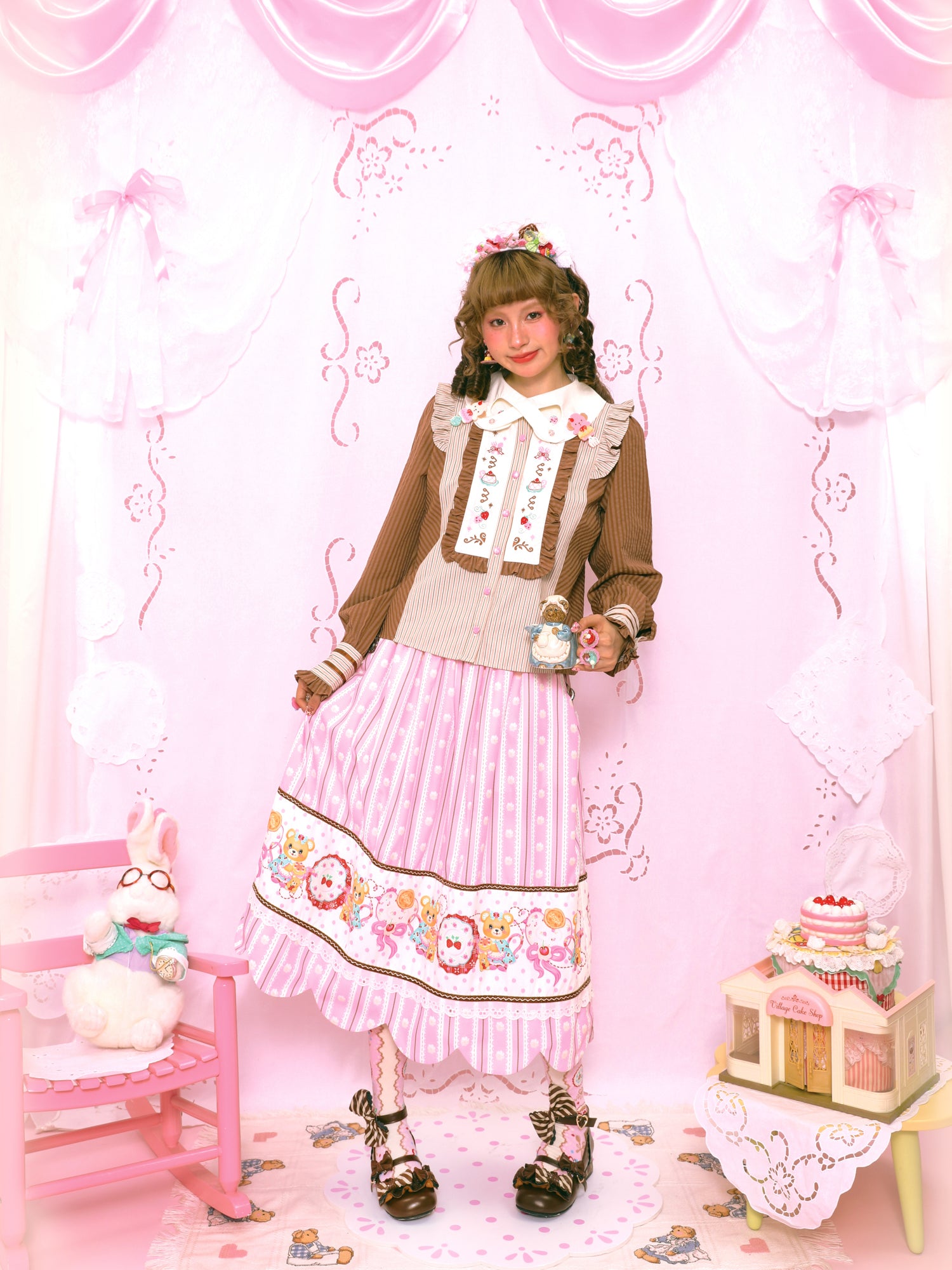 Bear Tea Party Original Striped Cream Print Elastic Waist Maxi Skirt