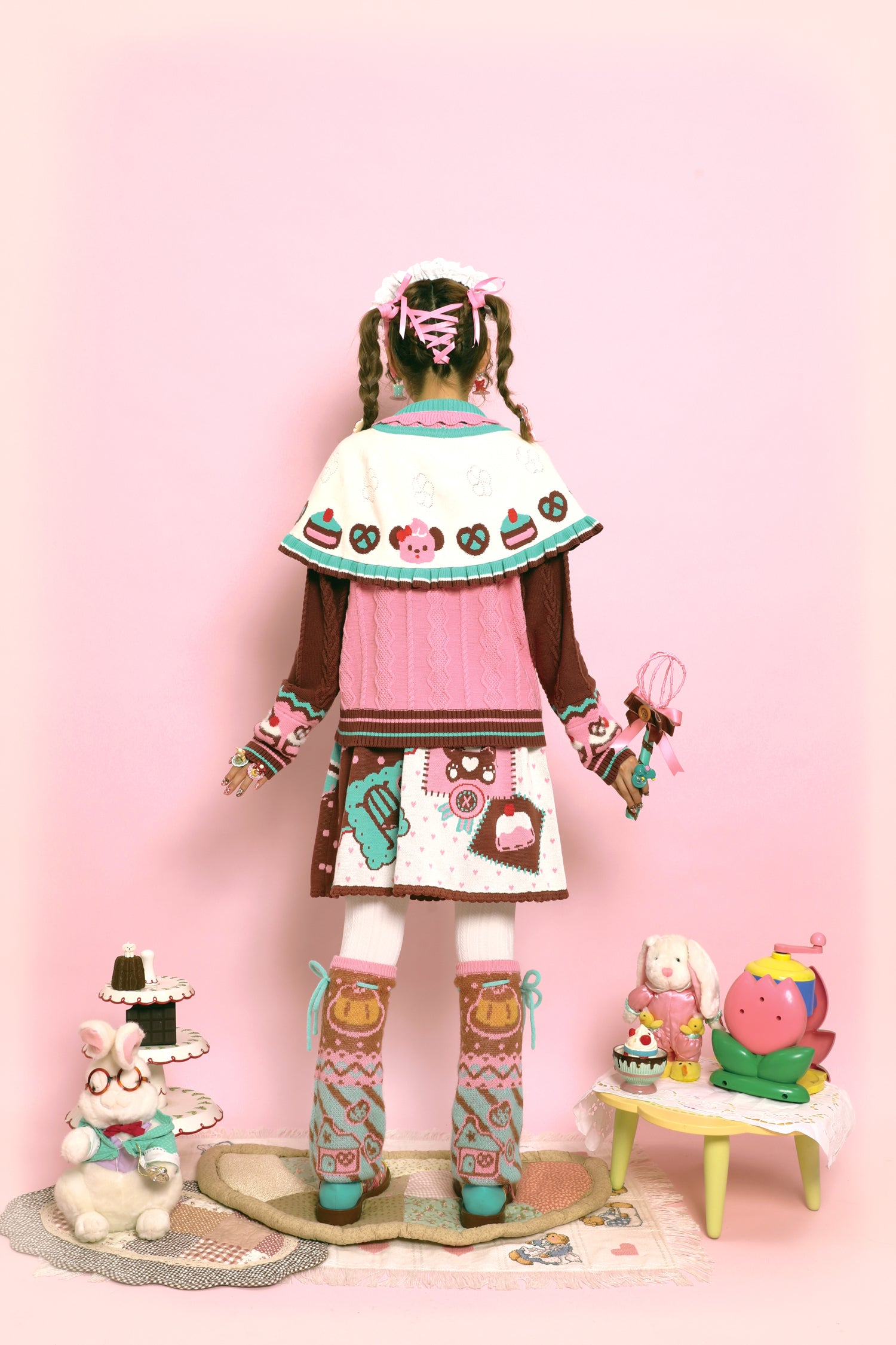 Pink Bunny Cute Retro Cable Knit Cape Sweater Two-Piece Set