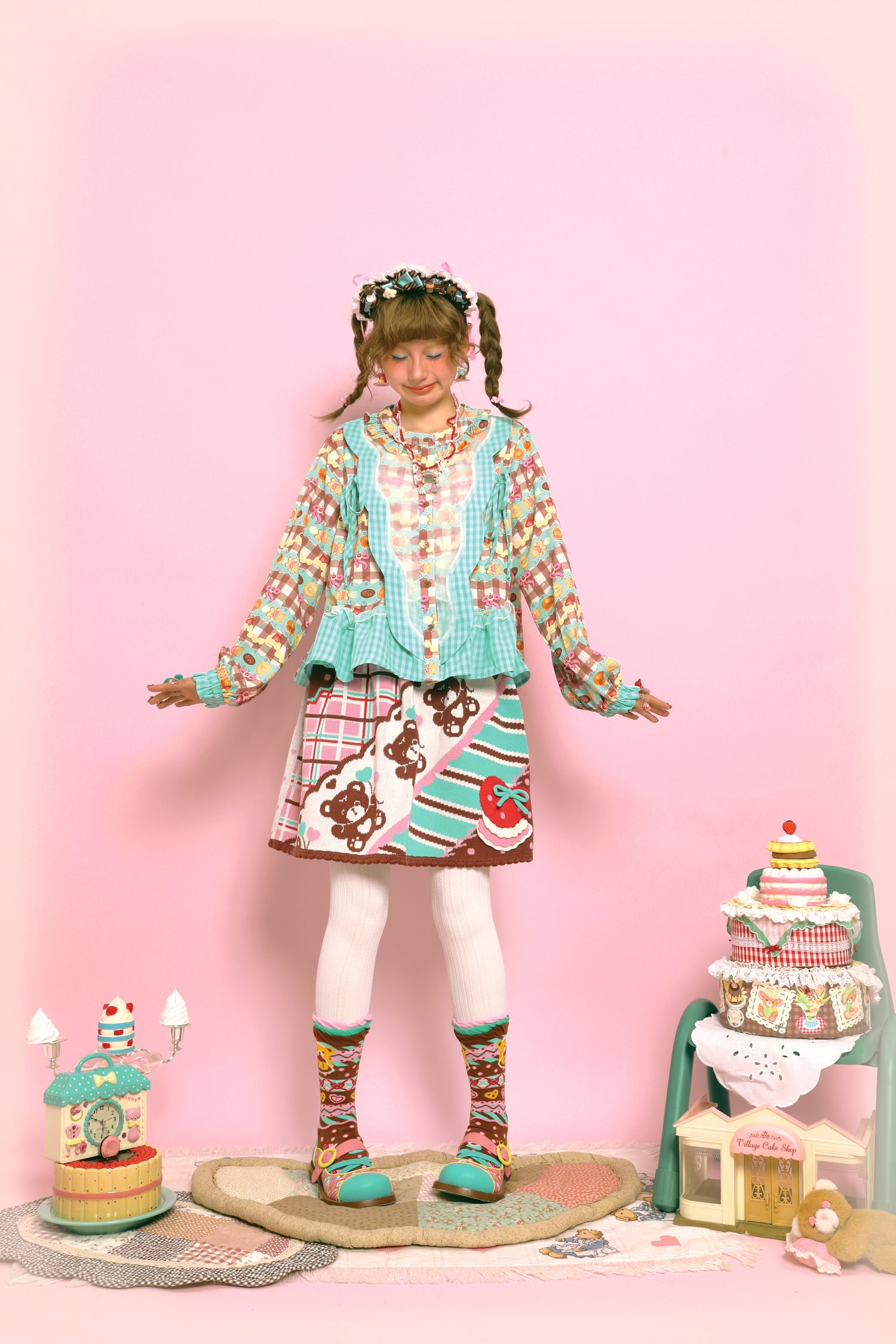 Retro diagonal striped bear thin and versatile cute knitted short skirt