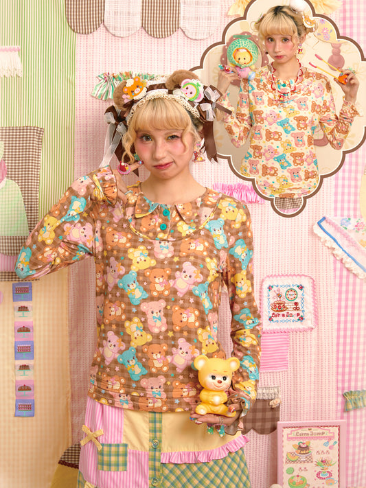 Bear print faux two-piece design, versatile long-sleeved elastic base layer